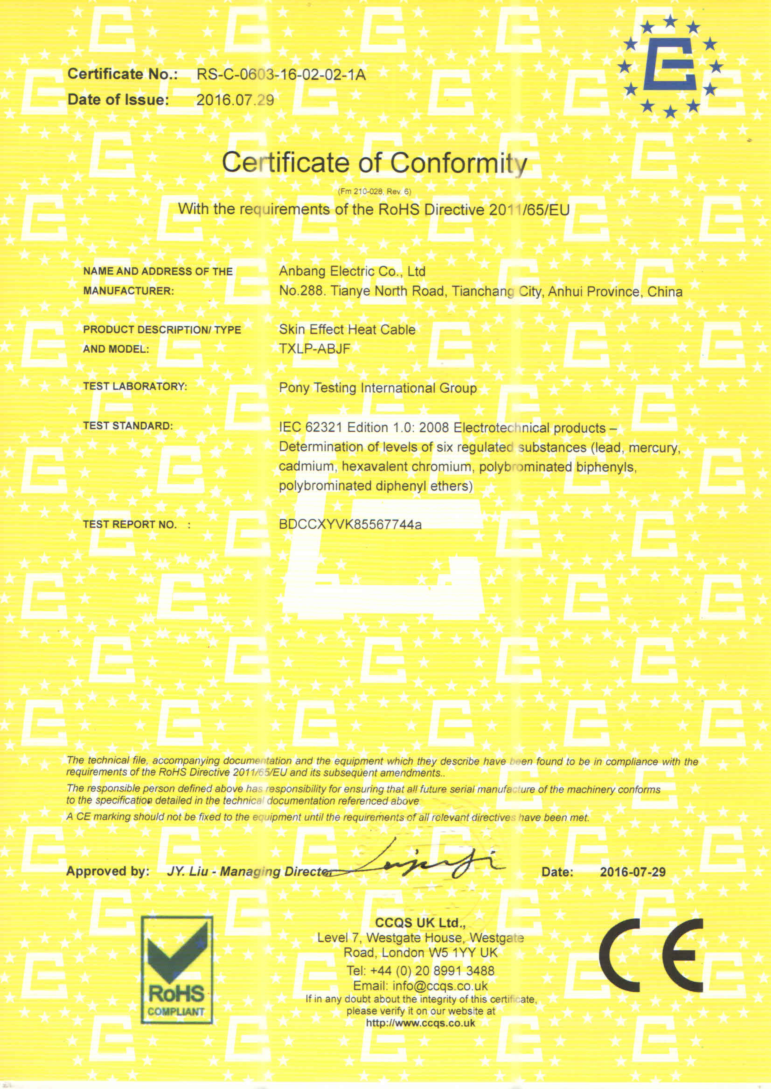 安邦電氣股份有限公司,總部位于北京市長(zhǎng)安街,成立于2004年,注冊(cè)資金10088萬(wàn)。安徽生產(chǎn)基地占地面積63000平方米,擁有66套各類(lèi)生產(chǎn)線(xiàn),其中進(jìn)口生產(chǎn)線(xiàn)6套。國(guó)家高新技術(shù)型企業(yè),滁州市市長(zhǎng)質(zhì)量獎(jiǎng)企業(yè),專(zhuān)精特新“小巨人”企業(yè),擁有國(guó)家知識(shí)產(chǎn)權(quán)局授權(quán)的45項(xiàng)專(zhuān)利,其中發(fā)明專(zhuān)利28項(xiàng) , 主筆《太陽(yáng)能熱利用自限溫電熱帶安裝規(guī)范》行業(yè)標(biāo)準(zhǔn),參編《自限溫電伴熱帶》國(guó)家標(biāo)準(zhǔn)、《工業(yè)和商業(yè)用電阻式伴熱系統(tǒng)》國(guó)家標(biāo)準(zhǔn)、《太陽(yáng)能熱利用自限溫電熱帶》行業(yè)標(biāo)準(zhǔn)、《爆炸性環(huán)境 電阻式伴熱器》國(guó)家標(biāo)準(zhǔn)等7項(xiàng)國(guó)家標(biāo)準(zhǔn)。企業(yè)通過(guò)UL認(rèn)證,國(guó)家強(qiáng)制性 CCC產(chǎn)品認(rèn)證,ISO9001質(zhì)量管理體系認(rèn)證,ISO14001環(huán)境管理體系認(rèn)證,ISO45001職業(yè)健康安全管理體系認(rèn)證,Q/SHS0001.1健康、安全與環(huán)境管理體系認(rèn)證,歐盟防爆ATEX認(rèn)證,歐盟CE認(rèn)證,RoHS認(rèn)證,俄羅斯海關(guān)聯(lián)盟認(rèn)證,國(guó)家防爆電氣CCC證書(shū)。產(chǎn)品系列:集膚伴熱系統(tǒng)、電伴熱系統(tǒng)、電加熱器、電地暖系統(tǒng)、集儀器儀表、電線(xiàn)電纜、高低壓配電柜(箱)、電纜橋架、閥門(mén)管件等等設(shè)計(jì)、制造、銷(xiāo)售。產(chǎn)品應(yīng)用于航天航空、軍工、石油、石化、天然氣、機(jī)場(chǎng)、化工、鋼鐵、隧道、消防、養(yǎng)殖、融雪化冰、室內(nèi)供暖、國(guó)家電網(wǎng)及眾多電廠等等國(guó)家重點(diǎn)工程。出口美國(guó)、英國(guó)、德國(guó)、俄羅斯、韓國(guó)、日本、哈薩克斯坦、烏克蘭、伊朗等眾多國(guó)家。